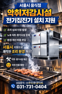 닥트 시공 설치 사례 서울시 음식점 악취저감시설 전기집진기 설치 지원 사업 안내 서울시 음식점 악취저감시설 전기집진기 설치 지원 서울시에서는 음식점에서 발생하는 조리...Read More 대전 한궁양꼬치 연기 제거 대형 전기 집진기 설치 완료! 대전 한궁양꼬치 연기 제거 전기집진기 설치 대전에 위치한 양꼬치 매장에...Read More 충주 LT소재 공장 연기제거 대형 전기집진기 설치 공장 대형 연기 제거 전기집진기 설치 충주 산업단지에 위치한 LT소재...Read More 인천 청라 중화요리 전문점 전기집진기 및 닥트 설치 시공 주상복합 단지 전기집진기 건물 내부 설치 인천 청라 주상복합 단지에...Read More 서울 소갈비 흑돼지 전문점 개업 전기집진기 및 닥트 설치 시공 개업시 주변 민원을 선제적으로 차단하기 위한 노력 도봉구 방학동에 위치한...Read More 수원 직화 돼지갈비집 전기집진기 설치 직화 돼지고기 구이 전문점 연기 민원 문제 수원시 이의동에 위치한...Read More 교보증권 건물내 식당 냄새 제거 전기 집진기 설치 건물내 지하 상가 내 음식점 배기 문제 해결 필요 여의도...Read More 주상복합 건설시 식당 냄새 제거 전기 집진기 미리 설치 주상복합 내 음식 냄새 및 연기 문제 해결 필요 대구...Read More 한방병원 구내식당 냄새 제거 전기 집진기 설치 주상복합 내 병원 구내식당의 배기 문제 해결 필요 청량리 한양수자인...Read More 서울 한남동 스테이크 레스토랑 전기 집진기 설치 스테이크 직화 구이시에 냄새 발생으로 민원 가능성 한남동에 위치한 스미스앤윌렌스키(Smith...Read More 중식당 명장 전기 집진기와 닥트 시공 전기 집진기, 닥트 시공 요청 중국집인 중식당 가게에서도 볶거나 구우면서...Read More 야탑 바른세상병원 수술실 항온 항습, 닥트 설치 설치 현황 야탑동 바른세상원에 수술실에 항온항습기와 닥트를 같이 설치햐였습니다. TAB풍량측정기와...Read More 빠른 성남, 분당 닥트 시공 업체 우진환경닥트 우진환경닥트는 성남시에서 닥트 시공을 하고 있습니다. 식당 닥트와 공조닥트를 원하시는...Read More 한식문화원 주방 공조닥트 시공 설치 현황 한식문화원에서 주방에서 공조닥트를 설치하였습니다. 주방에 설치하고, 건물밖으로 연결하여...Read More 서울 성수동 윈야드 커피숍 닥트 시공 설치 현황 성수도 윈야드 주방시설에 닥트 및 후두 시공하였습니다. 설치...Read More 오뚜기 공장 전기 집진기 및 닥트 시공 설치 설치 현황 병원에서도 새로운 건물을 올리는 경우에 제연 닥트 공사를...Read More 차병원 제연 닥트 시공 설치 설치 현황 병원에서도 새로운 건물을 올리는 경우에 제연 닥트 공사를...Read More