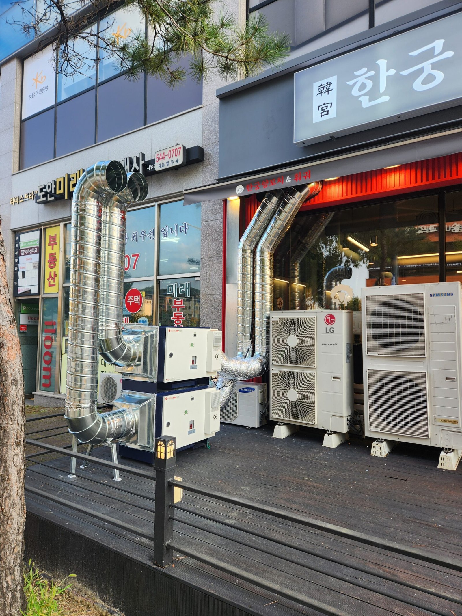대전 한궁양꼬치 연기 제거 대형 전기 집진기 설치 완료!